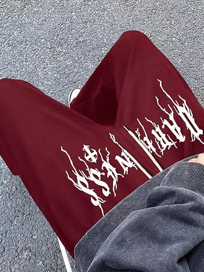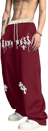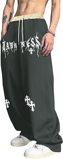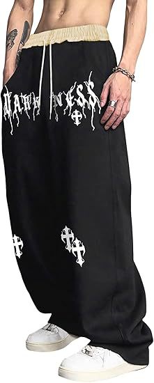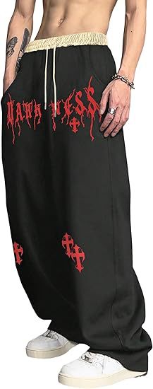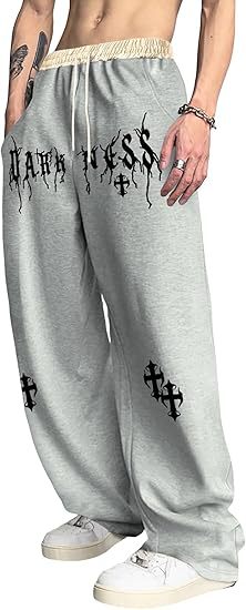 Men's Gothic Letter Print Sweatpants with Drawstring
