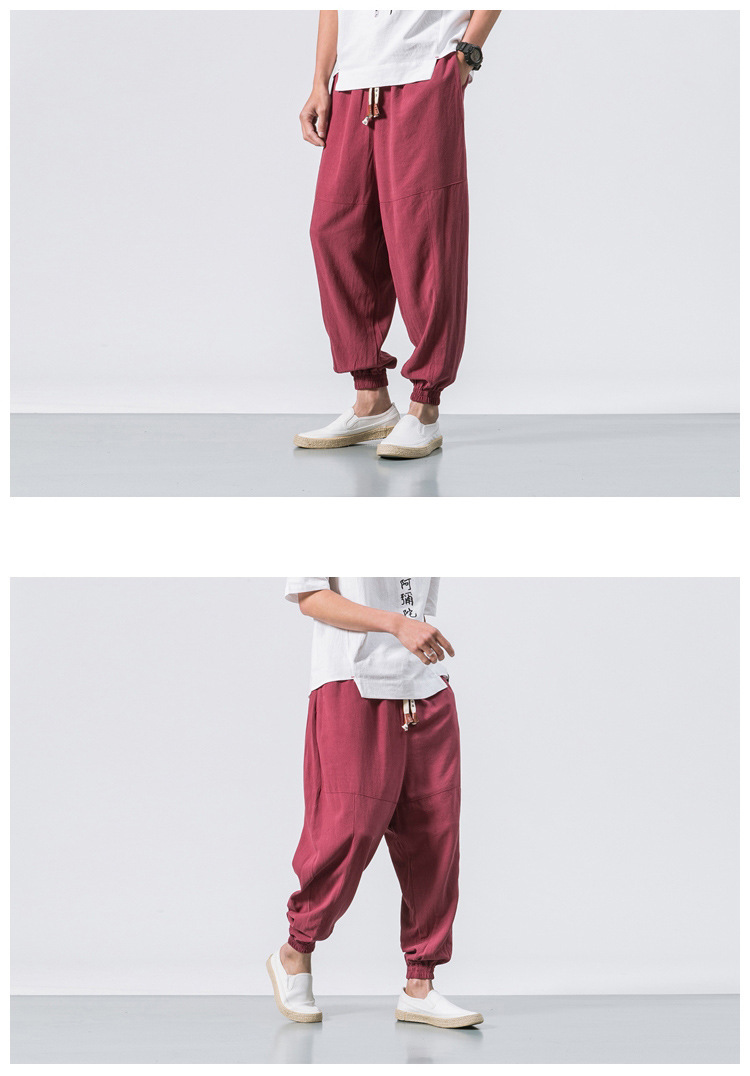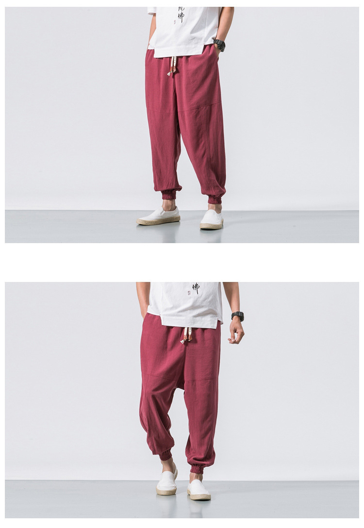Mens Linen Cotton Casual Trousers