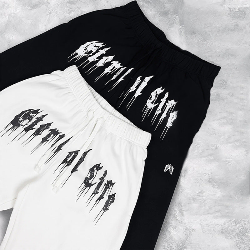 Features: Cuffed ankle, screen printing.